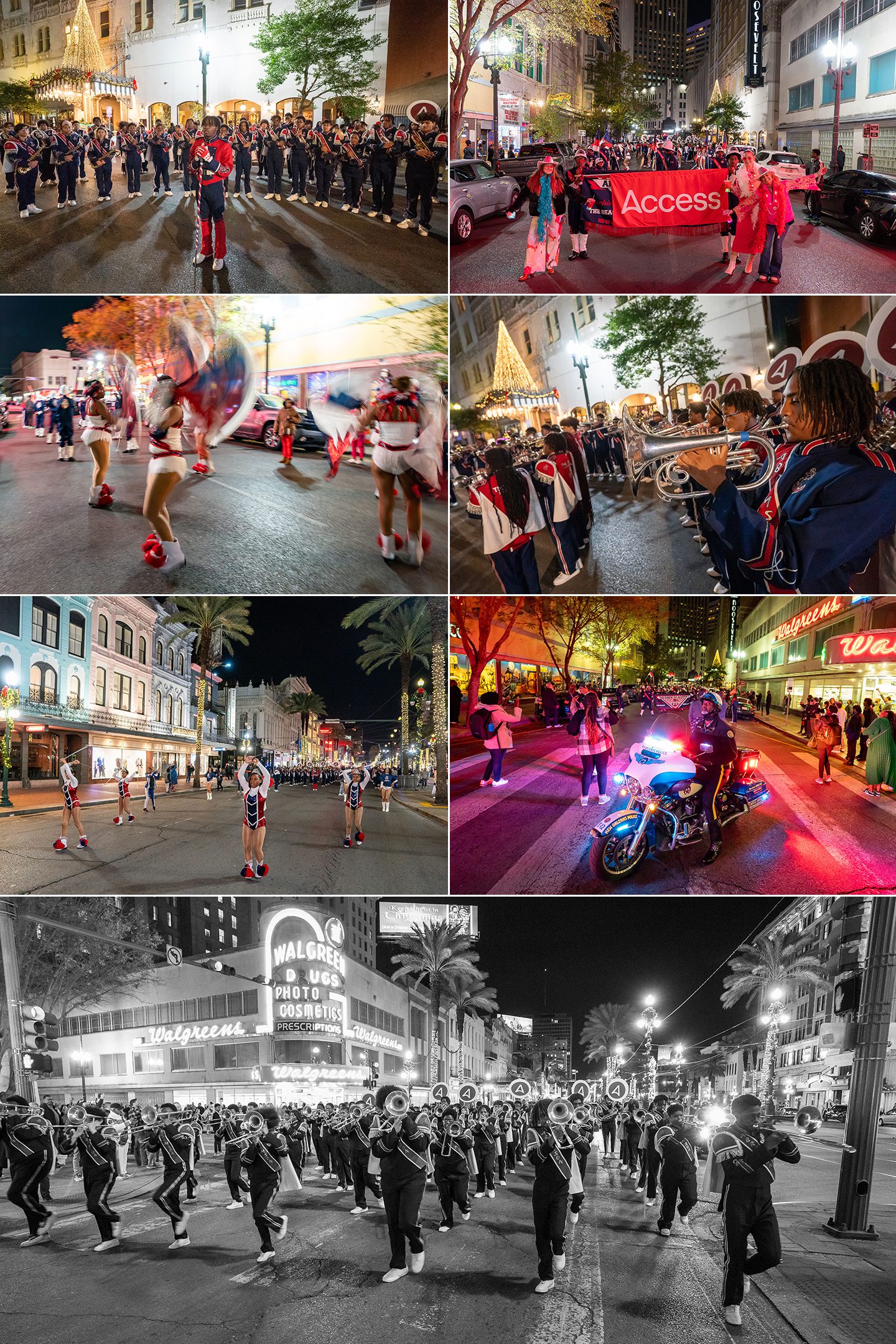 The most unique and incredible element of the event was a lively and colorful private parade. There were marching bands playing jazz and brass music, a police motorcade, dancers, stilt walkers, and enthusiastic crowds, creating an atmosphere of joyful celebration and community. It was the most incredible way to travel from one spot to another around New Orleans!!