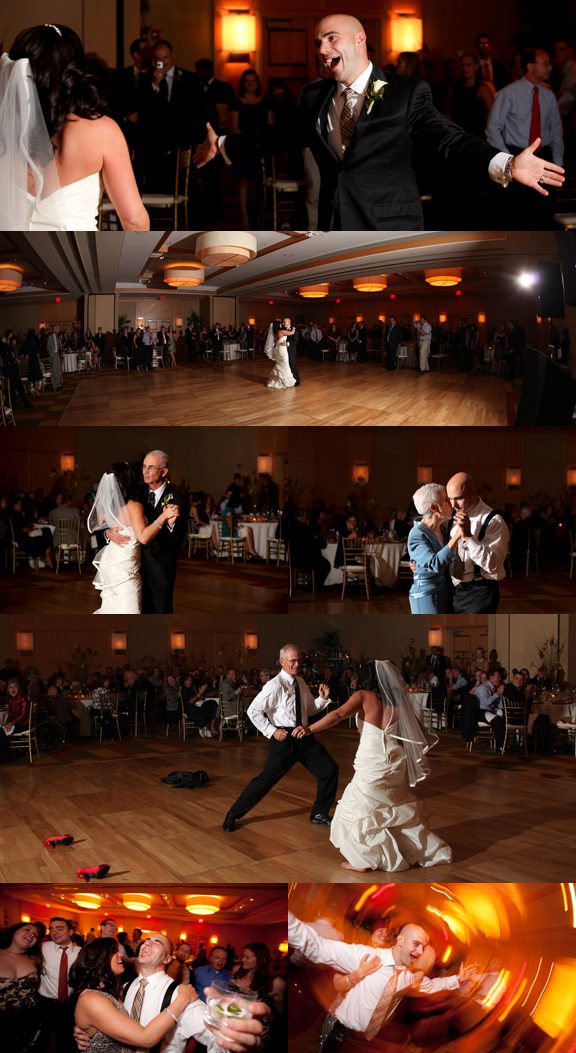 And then back to the Hyatt and the reception. It was a fun moment when the father daughter dance was ending, and Emily’s dad took off his jacket and threw it, and Emily kicked off her shoes and the music switched to a fast dance song as all of the guests hit the dance floor: