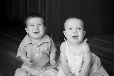 While the picture is nice (but I’m biased), I think the real entertainment would be a video of the parents and photographer dancing and singing around like goofballs to try to get two 8 month olds to smile at the same time!