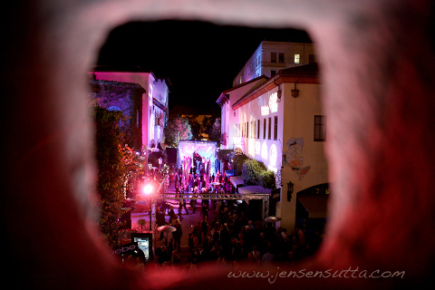 Of course the films and celebrities are only half of the excitement…the other half is the after parties! There were what seemed like THOUSANDS of people crowded in the Paseo Nuevo mall for the opening night after party. Here’s a picture of the entrance of the party taken through a wall from the second level: