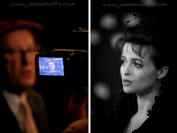 I didn’t know very much about Geoffrey Rush before the evening. But after listening to his charming responses, charismatic personality and funny gracious demeanor, I’m a big fan! Here’s a more unique red carpet shot through the viewfinder of a videographer, and an image of Helena Bonham Carter as she answered questions: