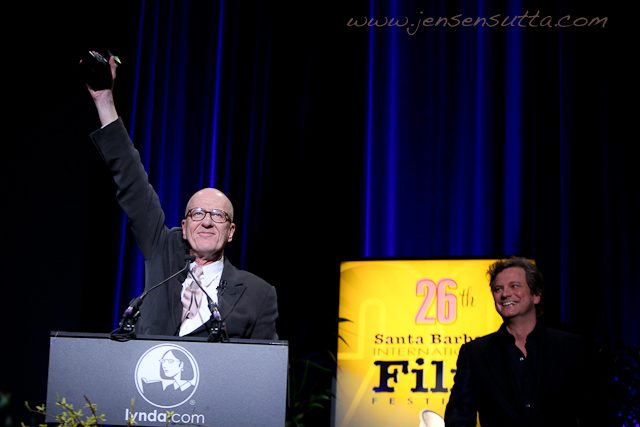 Last week at the Santa Barbara International Film Festival, Colin Firth presented the Montecito Award to Geoffrey Rush, and then “The King’s Speech” director, Tom Hooper presented cast members Colin Firth, Geoffrey Rush and Helena Bonham Carter the newly created ‘Ensemble’ Award.